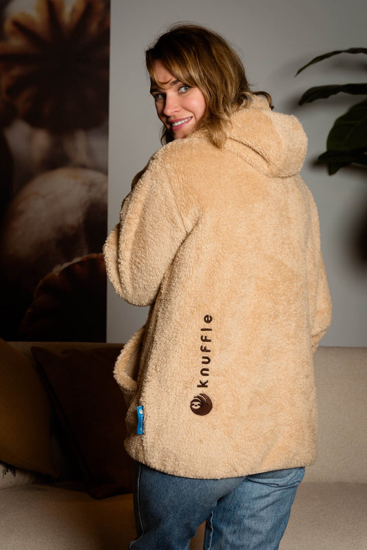 Knuffle is natuurlijk afgeleid van het Nederlandse woord 'knuffel,' Onze producten geven je het zachte, comfortable gevoel van een knuffel. De Knuffle Jogging Onesie en Knuffle Hoodies zijn ontworpen om het hele jaar door te dragen. Of je nu geniet van een mooie ochtend in de lente, een koele zomeravond of een knusse avond op de bank.